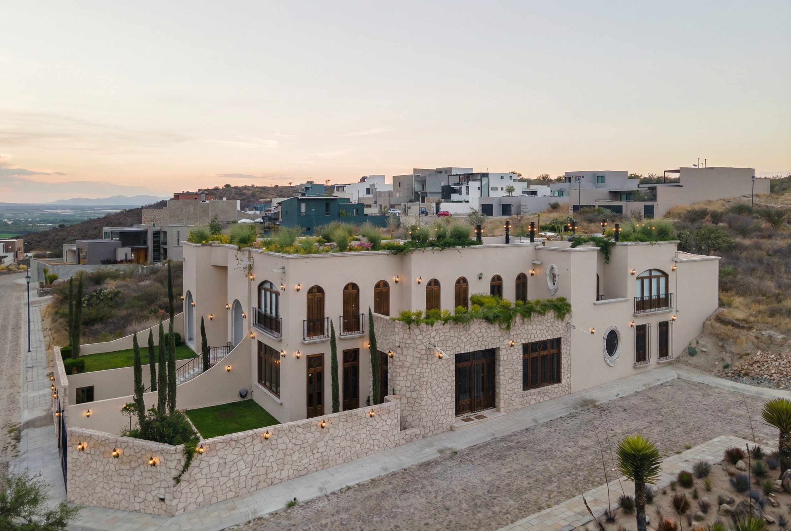 • Vistas panorámicas 360°, que integran el campo de golf, la Presa Allende y los emblemáticos atardeceres de San Miguel de Allende.