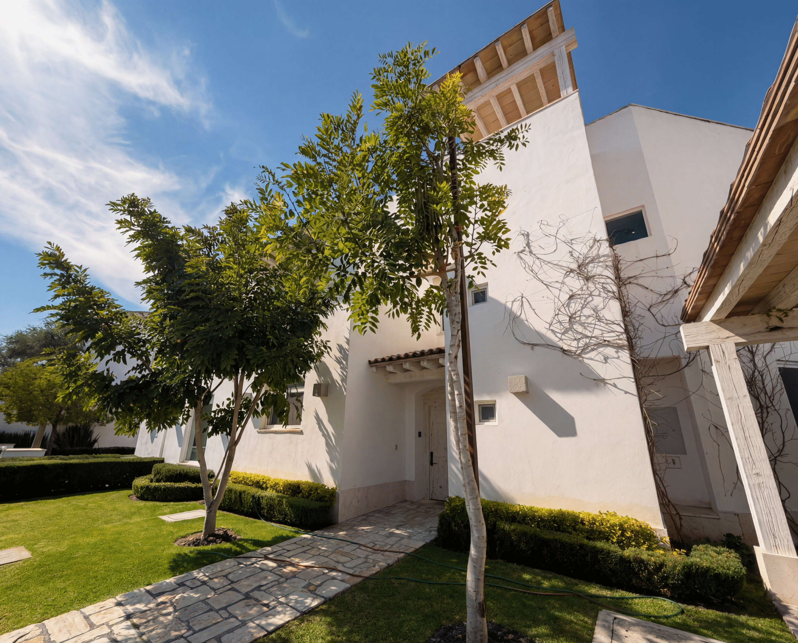 La vivienda dispone de tres recámaras y dos baños y medio, una sala-comedor fluida que conecta con la cocina integral y un estudio/oficina que aporta privacidad para el trabajo o el descanso. En el exterior, el jardín funciona como extensión natural del hogar y el roof con jacuzzi eleva la experiencia doméstica ofreciendo un espacio privilegiado para contemplar el entorno y recibir. La cochera para dos autos completa la funcionalidad cotidiana. Importante: la casa incorpora mejoras y variaciones en acabados superiores respecto a los estándares originalmente entregados por la constructora, lo que incrementa su calidad perceptible y su valor en el mercado.