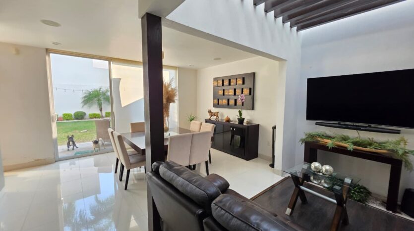La casa cuenta con tres habitaciones y tres baños y medio, acompañadas de espacios luminosos que fluyen con naturalidad: una amplia sala y comedor, además de un estudio ideal para oficina o área de lectura. La cocina integral, moderna y funcional, se integra con vistas al jardín, donde la terraza se convierte en el escenario perfecto para convivir o relajarse al atardecer.