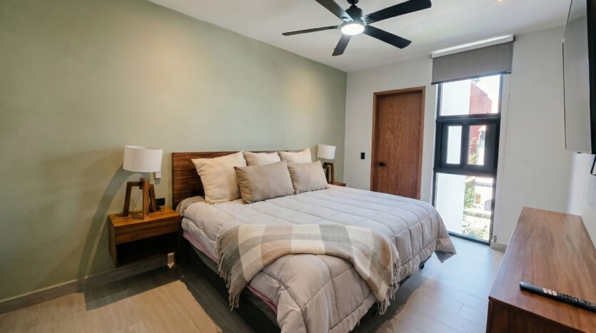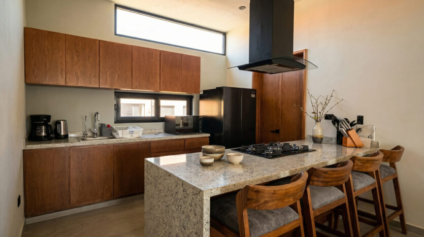 La propiedad se organiza a partir de un espacio continuo que integra cocina y estancia, generando un ambiente funcional y bien iluminado. Cuenta con 2 recámaras y 2 baños completos, ofreciendo una distribución equilibrada entre privacidad y convivencia.