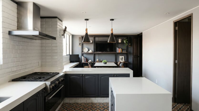 La propiedad se presenta completamente amueblada, con una distribución que integra sala y comedor en un espacio continuo que se extiende hacia una terraza, generando una atmósfera abierta y luminosa. La cocina integral se incorpora de forma funcional, acompañando la dinámica diaria con orden y eficiencia.