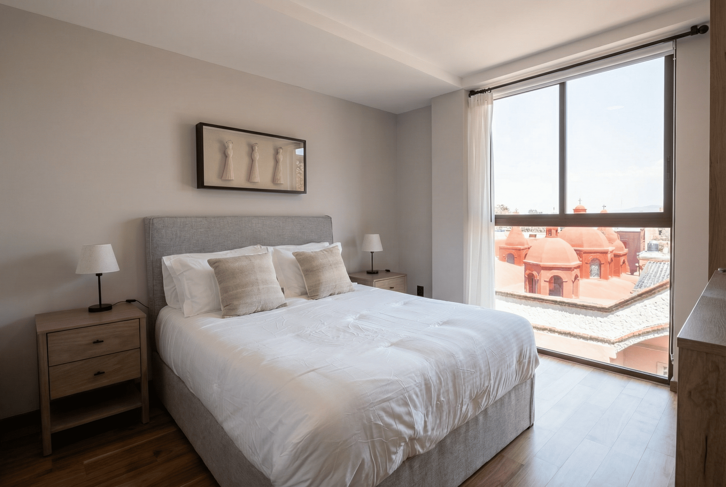 En el corazón de una de las ciudades más celebradas del mundo, este departamento amueblado en Zamora Ríos ofrece algo que muy pocos espacios pueden garantizar: la libertad de llegar y simplemente habitar. Tres recámaras luminosas, tres baños completos, una cocina y estancia integradas con todo lo necesario para que tu vida cotidiana fluya sin fricciones, y un estacionamiento privado para cuando la ciudad te llame más allá de sus calles empedradas. El roof privado es donde San Miguel revela su mejor versión .